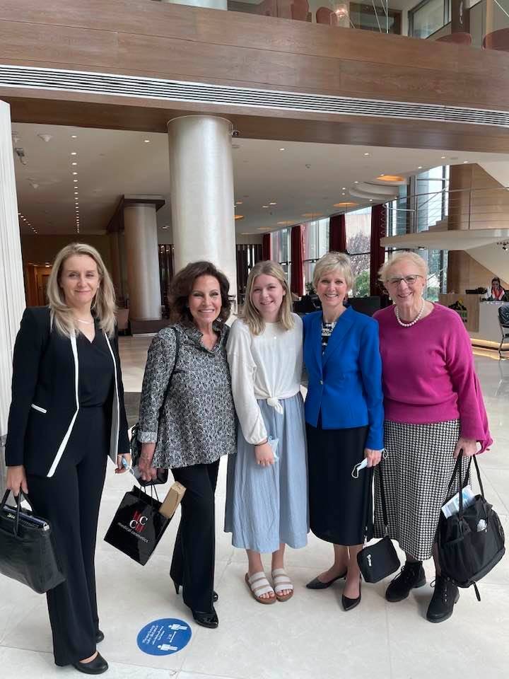 Eva, Jean, Carolyn, and two LDS humanitarian representatives meet in Erbil